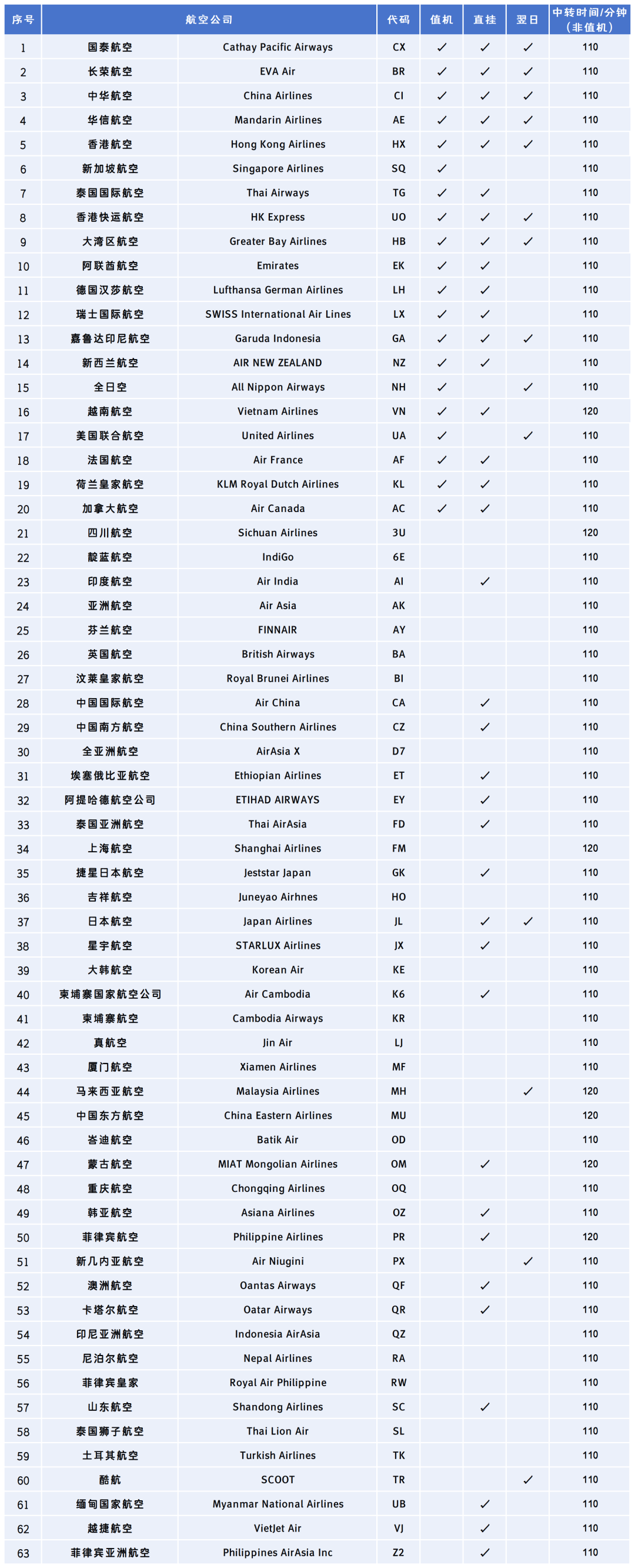 航空公司名单可能会有变动,最新咨询请按香港国际机场官网为准。