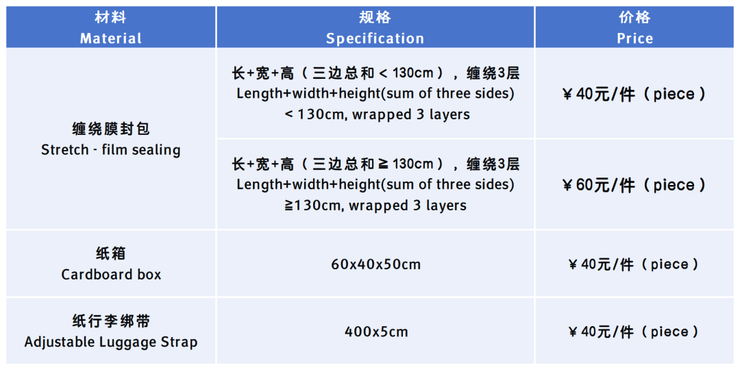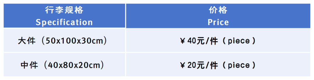 每张全额船票可免费携带行李1件(不超20公斤),超出的行李将按件数收取一定的费用: