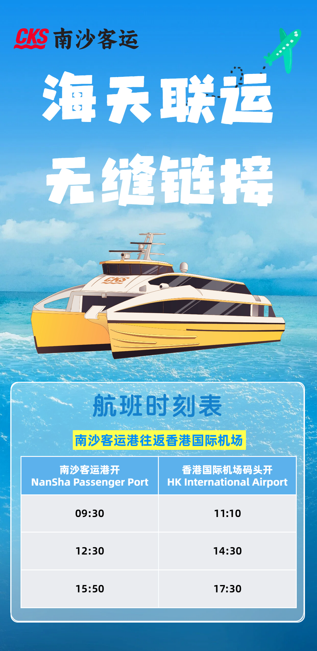 ❌ 所乘飞机的航空公司未参与香港国际机场海天码头运作的,不列入南沙客运港服务范围内。