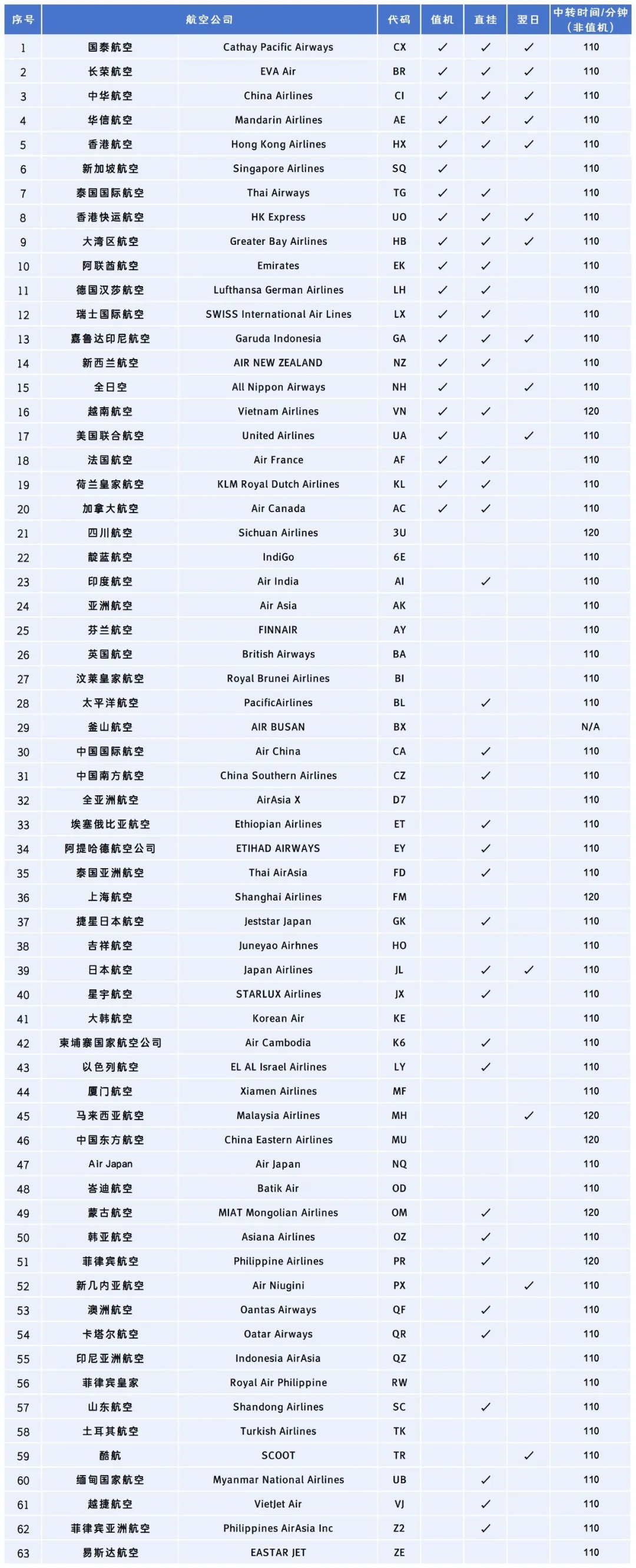 航空公司名单可能会有变动,最新咨询请按香港国际机场官网为准。