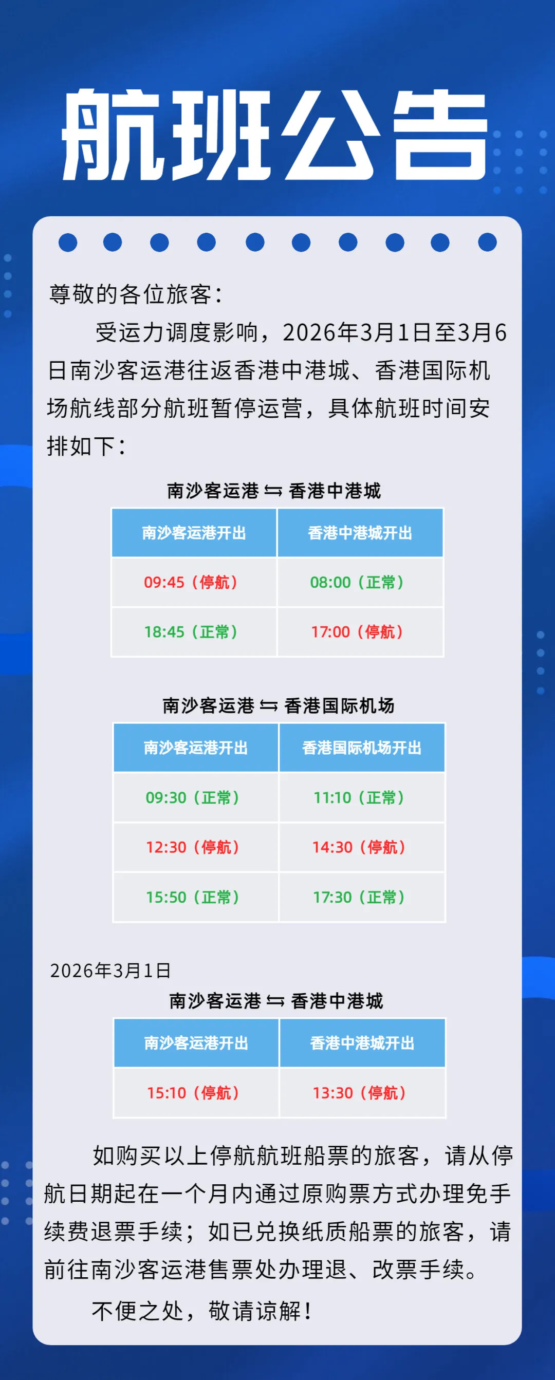 - » 「航班公告」2026年3月1...2026.02.28