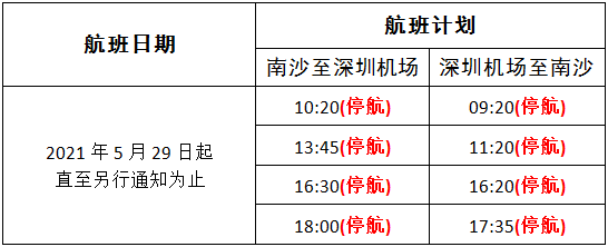 接船务公司通知,5月29日起深圳机场航线航班暂停服务,具体复航时间将另行通知。